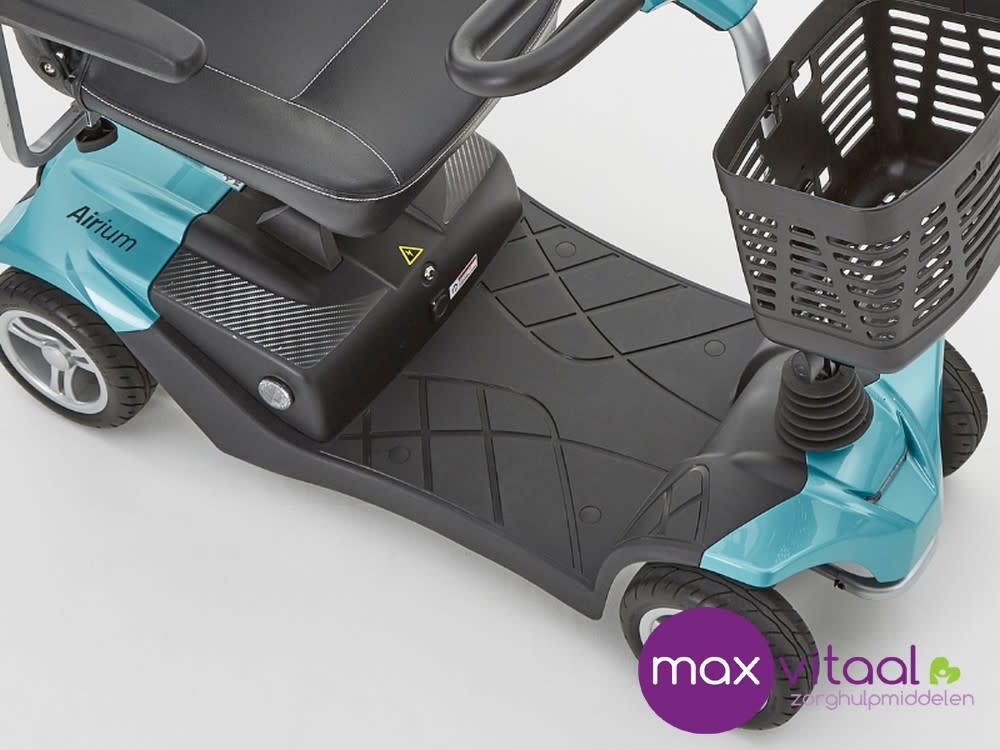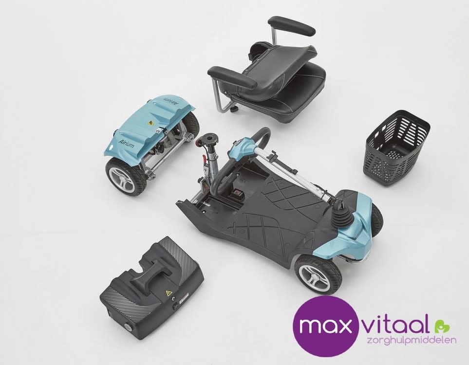 Met een bereik van 40 km en een maximale gebruikersgewicht van 136 kg biedt de Airium de grootte, het comfort en de prestaties van een volwaardige scootmobiel met het gewicht van een veel kleinere scootmobiel die in de kofferbak van een auto past. Hij kan gemakkelijk in 4 stukken worden gedemonteerd, waarbij het zwaarste stuk slechts 13 kg weegt.
