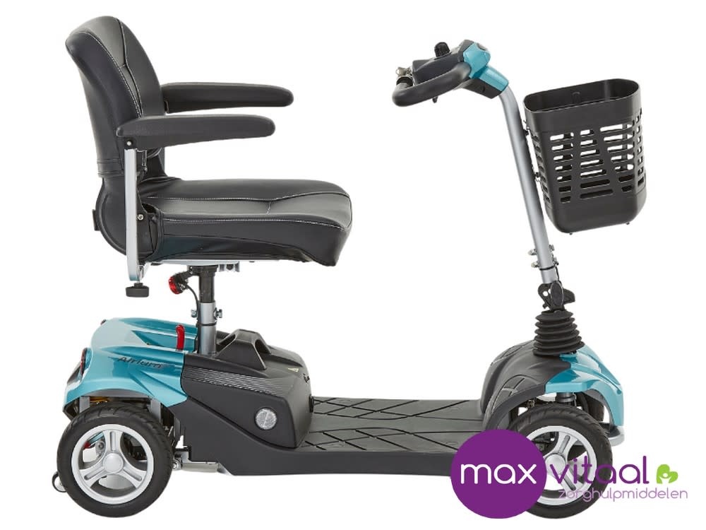 De ultieme combinatie van Lithium-batterij en een lichtgewicht aluminium chassis, waardoor het de lichtste vaste scootmobiel op de Nederlandse markt is.