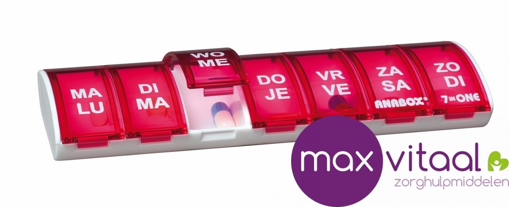 Losse Anabox weekbox. De Anabox weekbox is een box voor 7 dagen met 1 vak per dag. Voorzien van Nederlandstalige en Franstalige tekst.