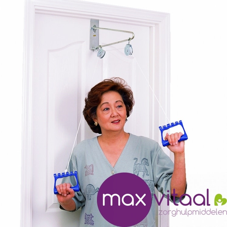 De armtrainer helpt om de bovenlichaamspieren aan te sterken na bijvoorbeeld een CVA. Heeft een metalen beugel die 38 cm naar voren komt zodat de katrol verder van de deur staat. Hierdoor ontstaat meer ruimte om te bewegen. Ideaal voor passief oefenen. Inclusief 2,6 m touw. Past op de meeste deuren.