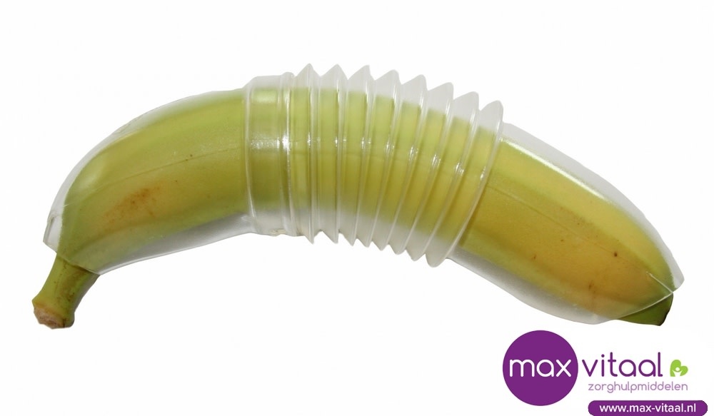 Beschermt uw banaan en de inhoud van uw tas. Past altijd vanwege het flexibele gedeelte in het midden.