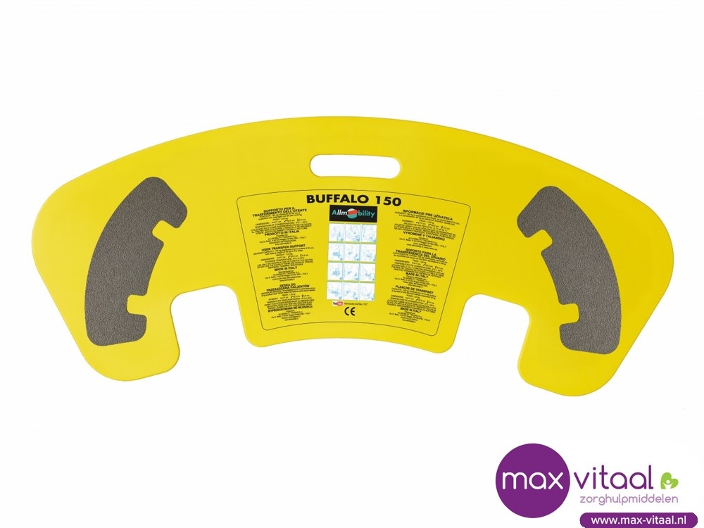 De felgekleurde Buffalo transferplank heeft twee inkepingen om maximale stabiliteit en veiligheid te garanderen tijdens een transfer. De transferplank met glijoppervlak is gemaakt van synthetische vezels. Door de composietvezels kan een maximale weerstand gegarandeerd worden en komen er geen krassen op het oppervlak van de plank, wat bij andere materialen na verloop van tijd wel het geval is.