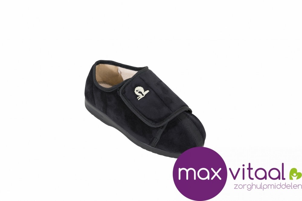 Luxe pantoffels: - Verstelbare klittenbandsluiting, - Brede schacht en pasvorm - Zachte uitneembare binnenzool
