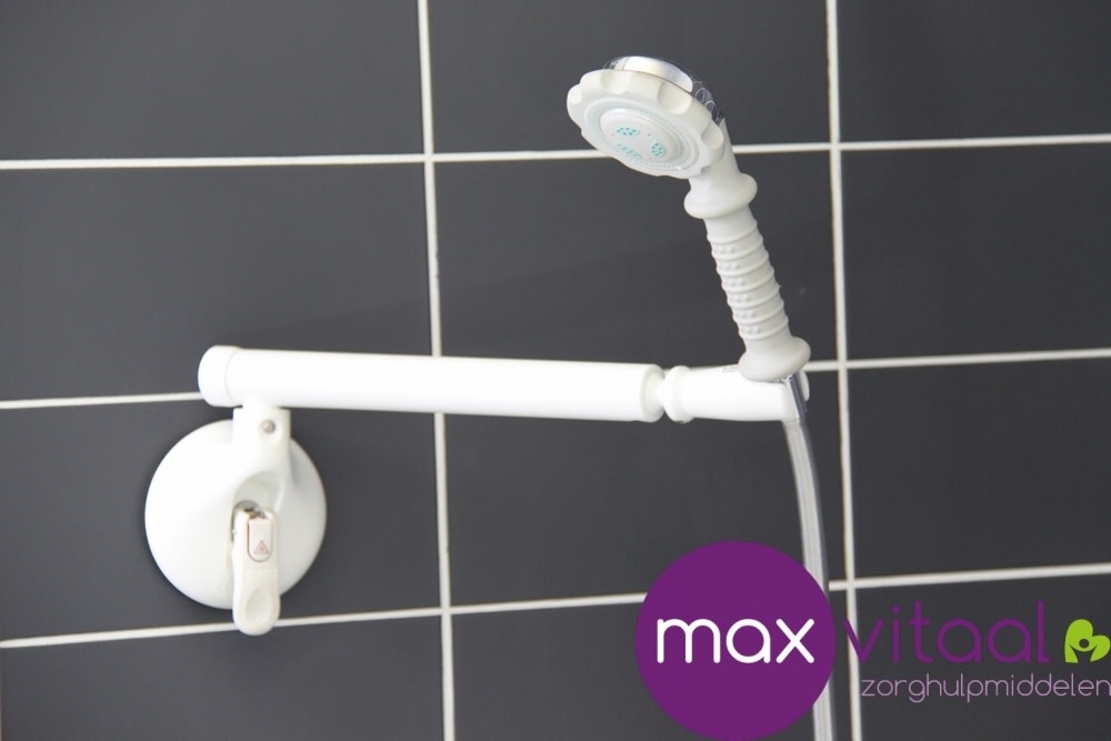 De instelbare douchekophouder met zwenkarm zorgt ervoor dat de douchekop altijd binnen handbereik is, zelfs zittend.