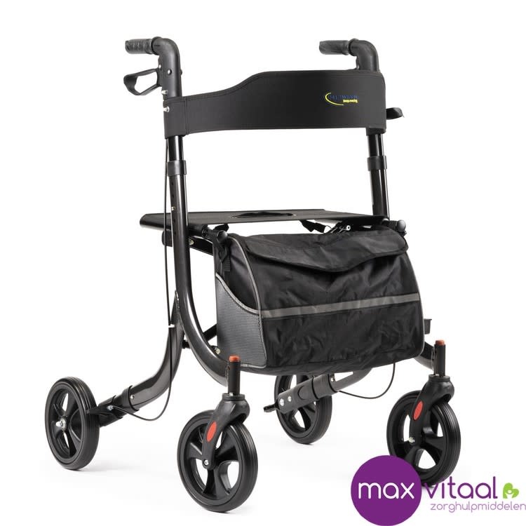 Optioneel is er een luxe, gesloten boodschappentas beschikbaar. Deze past goed bij het design van de rollator.