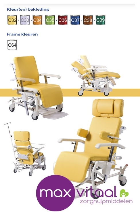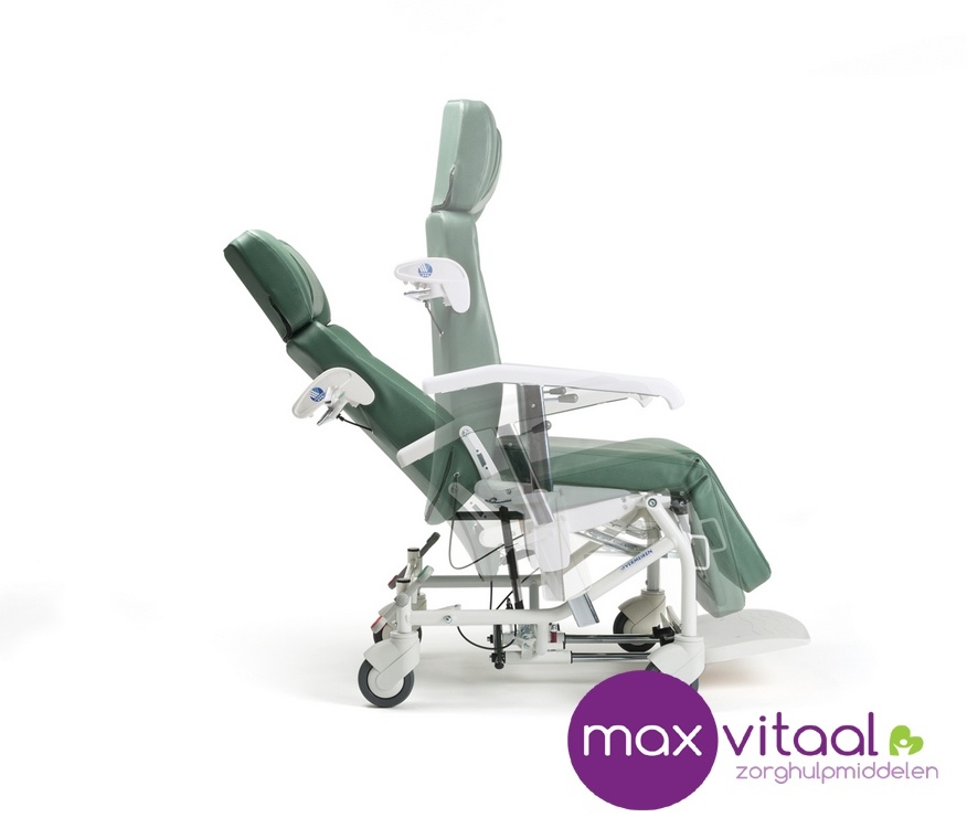 De Alesia geriatrische stoel heeft een inclineerbare rug met dubbele bediening. Lees meer
