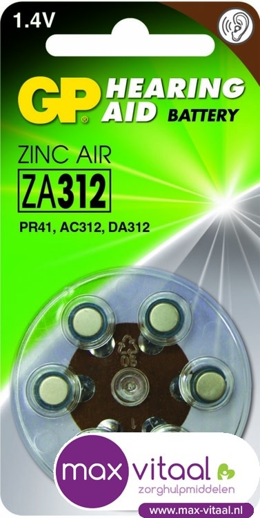 Zink Air hoorapparaat batterijen - ZA312, blister 6 stuks