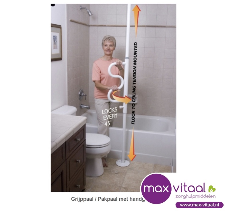 Deze grijppaal met zwenkbare handgreep klikt iedere 45 graden vast. De handgreep is op vier verschillende hoogtes vast te pakken. De grijppaal kan in vrijwel elke ruimte geïnstalleerd worden. Lees meer