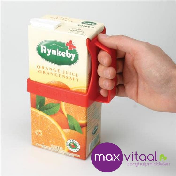 Handvat voor vruchtensappaken. Gemakkelijk handvat voor brede pakken van 1 of 1,5 liter pakken met een platte bovenkant. Lees meer