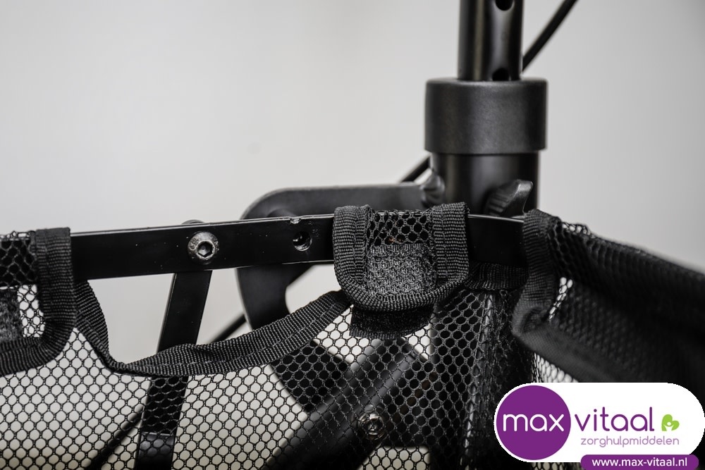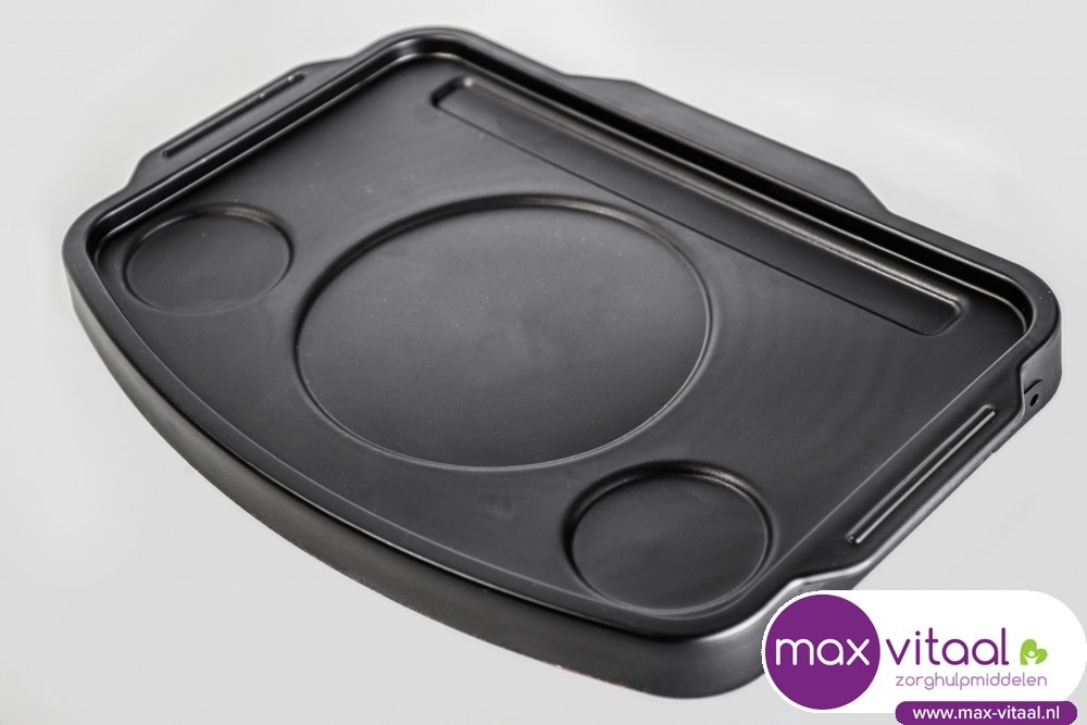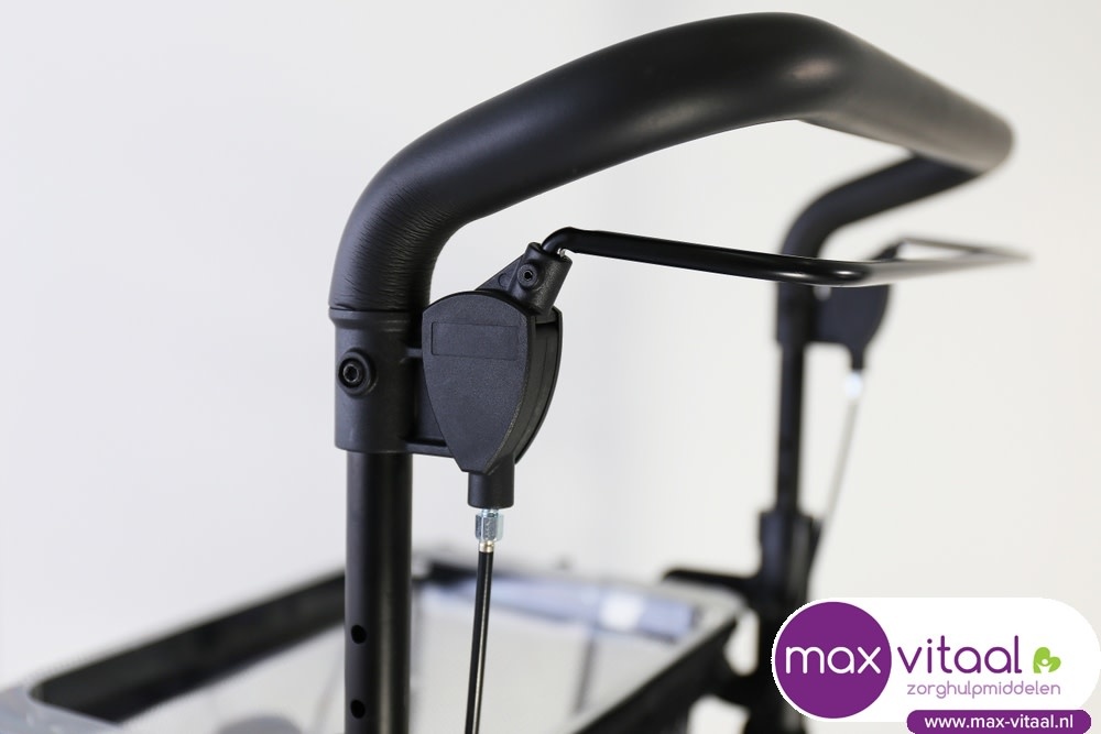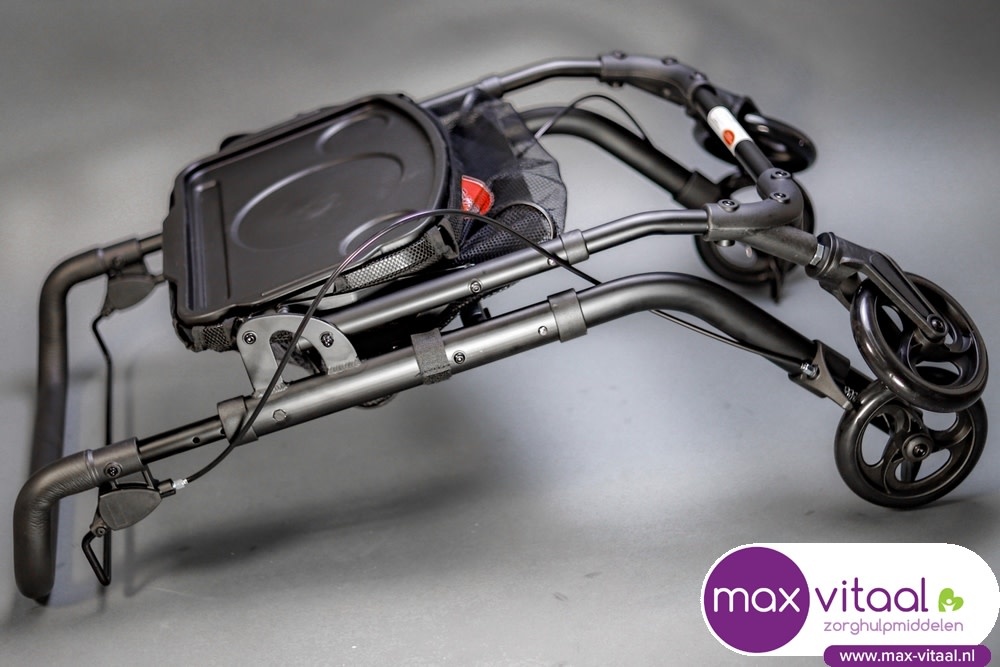 Het comfortabele handvat is volledig met PU-schuim bedekt. De parkeerrem kan met één hand worden bediend. Makkelijk op te vouwen en op te bergen. Inclusief dienblad en mandje.