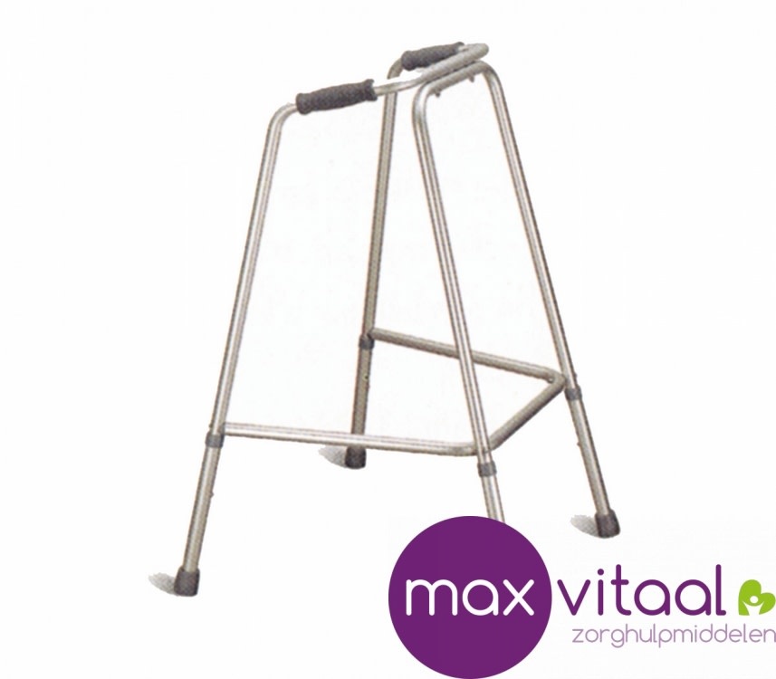 Lichtgewicht aluminium looprek. Stevig schuin model met plastic handgrepen en rubberen doppen voor extra steun. Lees meer