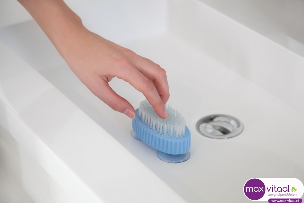 Schrobben met één hand. Zeer geschikt om nagels of kunstgebit te reinigen.