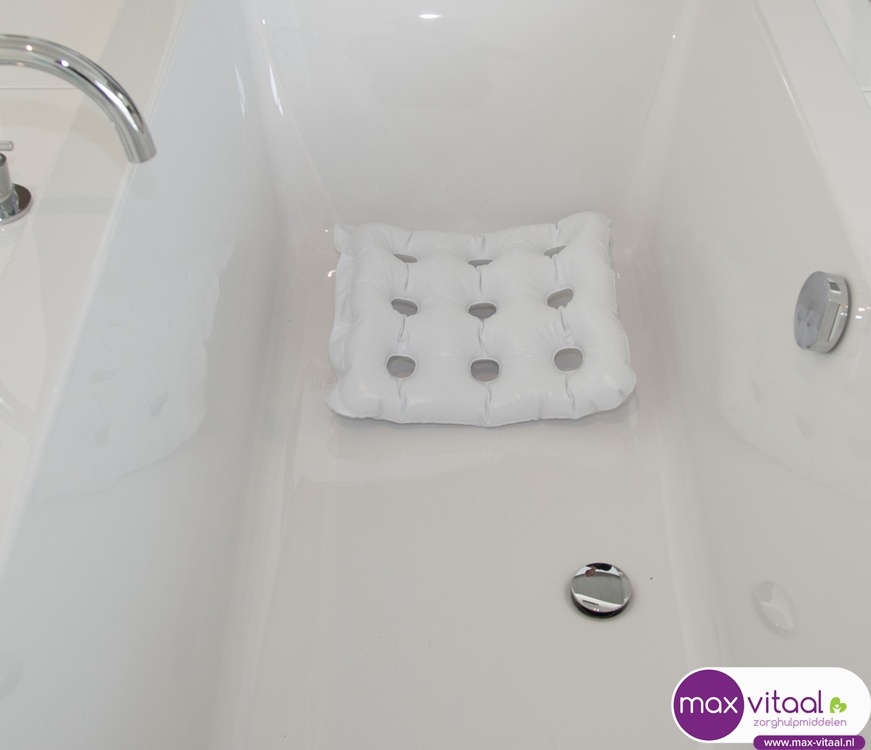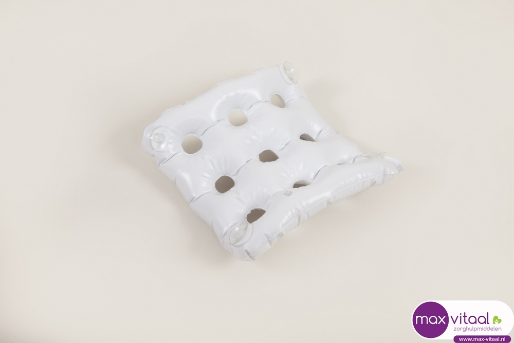 Dit opblaasbaar zitkussen biedt comfort tijdens het baden. Vier zuignappen houden het kussen op zijn plaats.