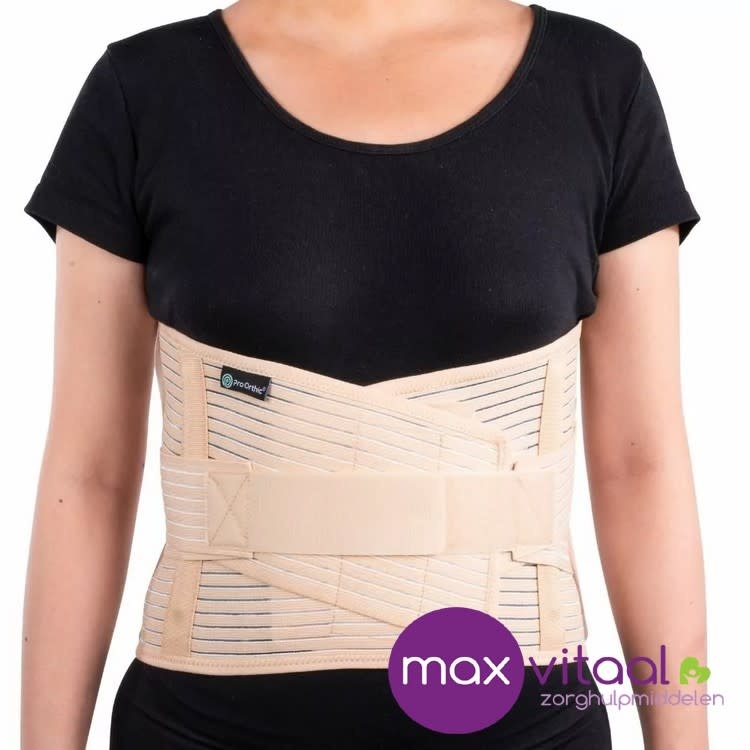 De Pro Orthic Lumbo Basic is een korset met ondersteunende extra banden die gemaakt zijn van elastische compressiestof. De rugbrace is voorzien van twee stevige spalken aan de achterzijde van de brace en vier flexibele kunststof baleinen aan de voor- en achterzijde voor extra ondersteuning. De Lumbo Basic wordt gesloten middels klittenband sluiting aan de voorzijde.door klittenband aan de voorkant van de rugsteun.