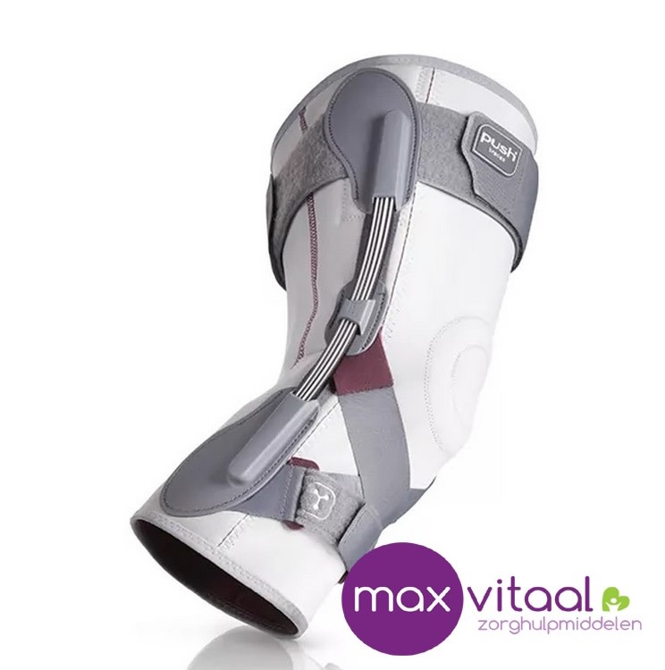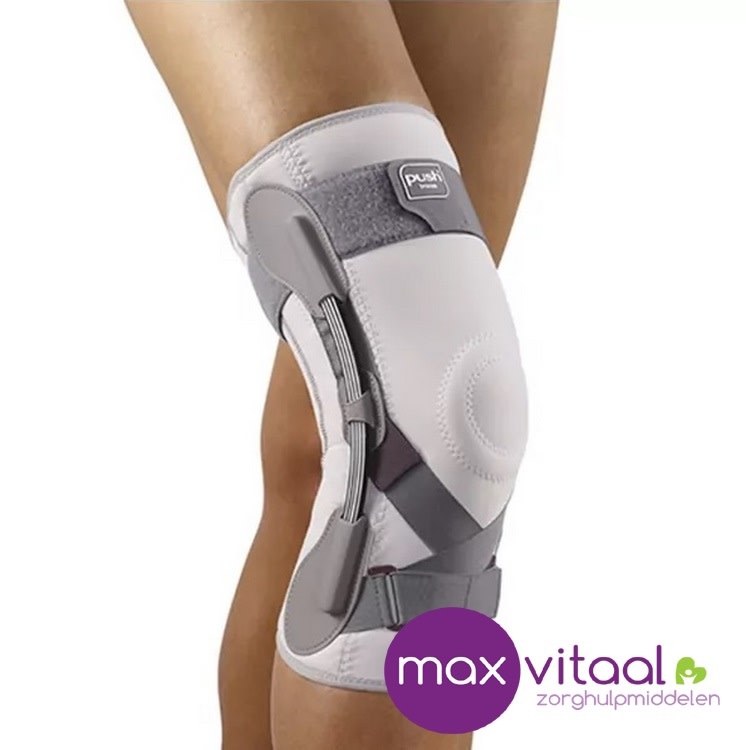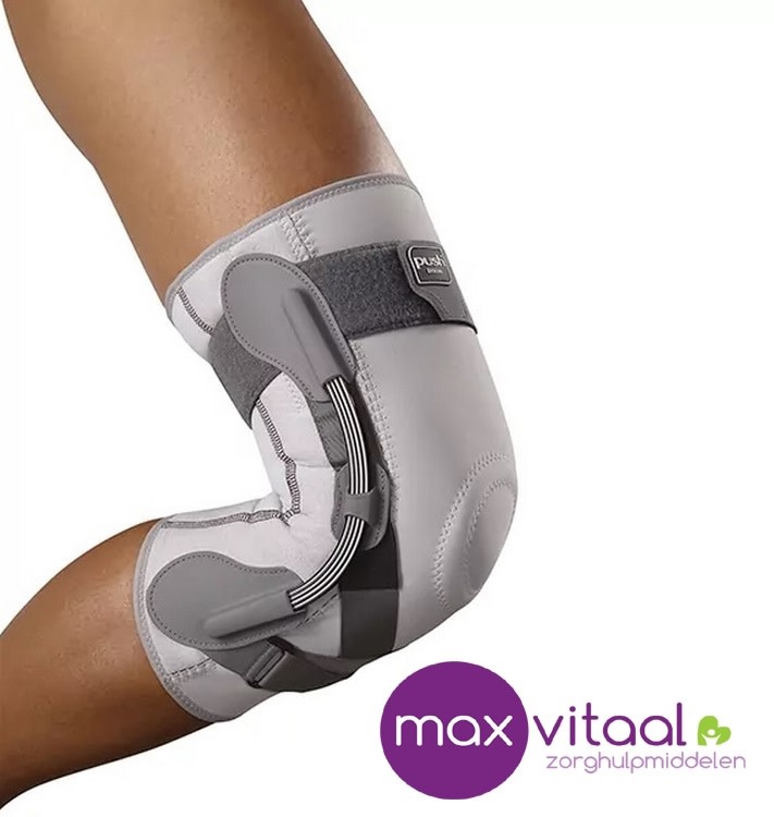 De Push med Kniebrace biedt een hoge mate van ondersteuning aan de knie. De binnen- en buitenzijde van de knie wordt ondersteunt door twee bladveerscharnieren. De bladveren volgen op unieke wijze de natuurlijke beweging van de knie, terwijl het strekken en buigen van de knie niet wordt gehinderd. De anatomische pasvorm, unieke bandconstructie en toepassing van siliconen zorgen ervoor dat de brace goed blijft zitten tijdens het bewegen. Al met al is dit een kwalitatieve brace die de knie goed stabiliseert. Door het beperkte volume wordt de brace onopgemerkt onder de kleding gedragen. De brace is gemaakt van Sympress™, een hoog kwalitatief comfortabel materiaal. Het product voelt zacht aan en biedt de gebruiker een comfortabel en beschermd gevoel. De Push med Kniebrace is eenvoudig aan te leggen en kan zonder problemen gewassen worden.