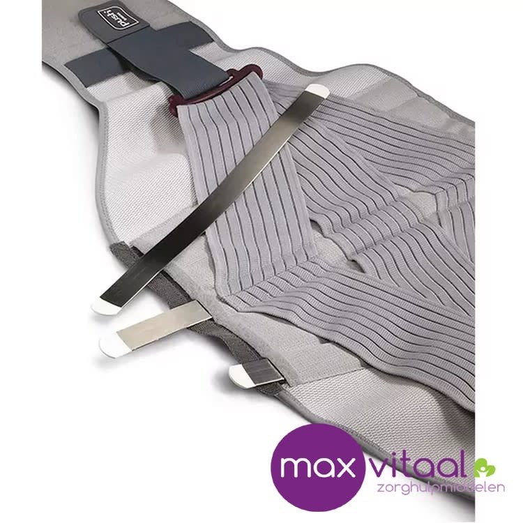 De Push med Rugbrace verbetert de houding van de lumbale wervelkolom waardoor pijnklachten verminderen. Door het aanspannen van de elastische banden wordt compressie geboden waardoor de ondersteuning door de toegepaste metalen verstevigingselementen wordt versterkt. De compressie is naar eigen voorkeur eenvoudig in te stellen. De verstevigingselementen zijn individueel aanpasbaar.