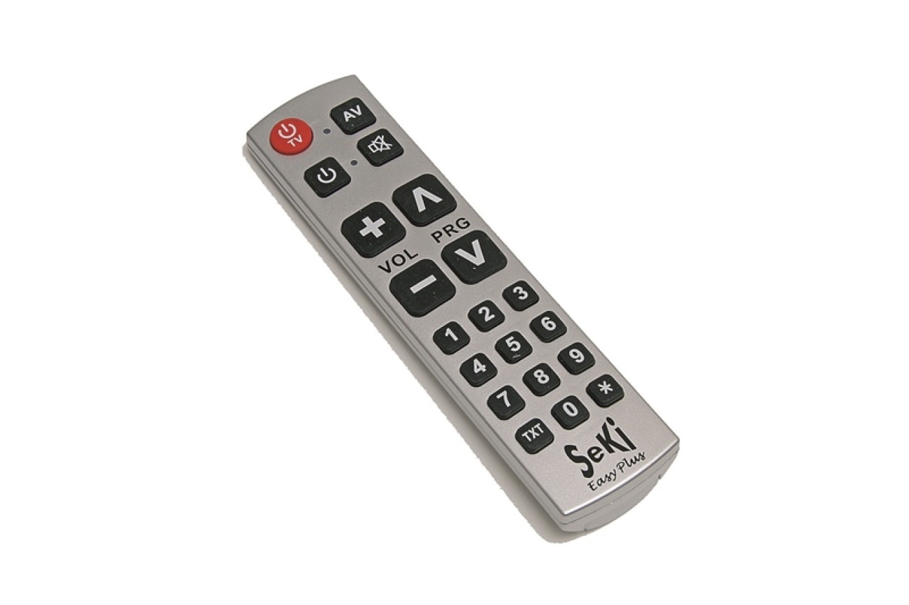 De Seki Easy Plus afstandsbediening neemt de signalen van uw huidige infrarode afstandsbediening over voor ontvangst van TV, teletekst en audioapparatuur. Met grote voelbare toetsen met een hoog contrast. Zeer geschikt voor senioren en slechtzienden. De cijfertoetsen van 0 t/m 9 kunnen gebruikt worden voor kanaalkeuze of voor het opzoeken teletekstpagina’s.