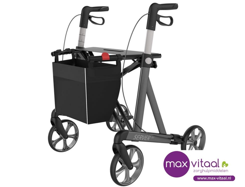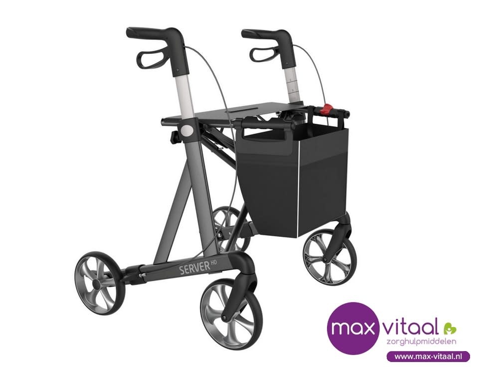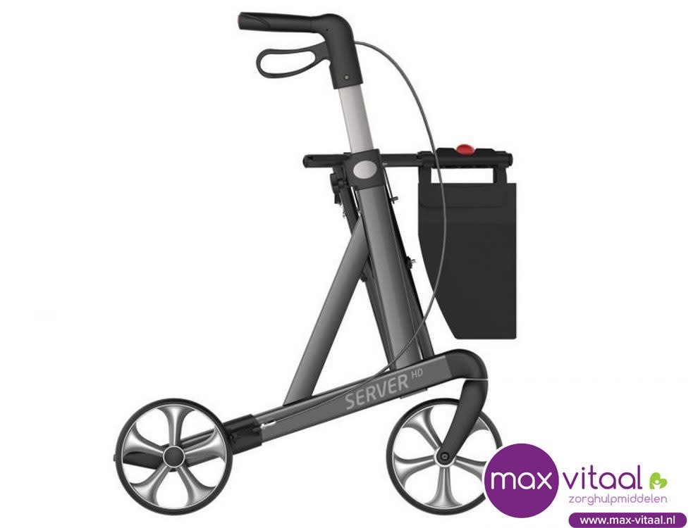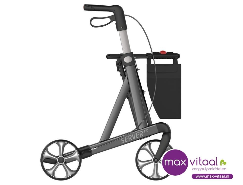 De Server HD is eenvoudig in te klappen en blijft gesloten door het eenvoudige vergrendelingssysteem welke tevens dient als ergonomisch gevormd handvat waarmee de rollator opgepakt kan worden.