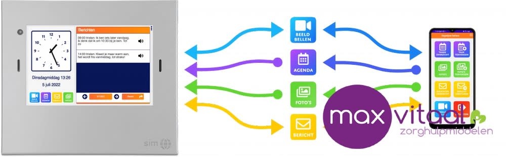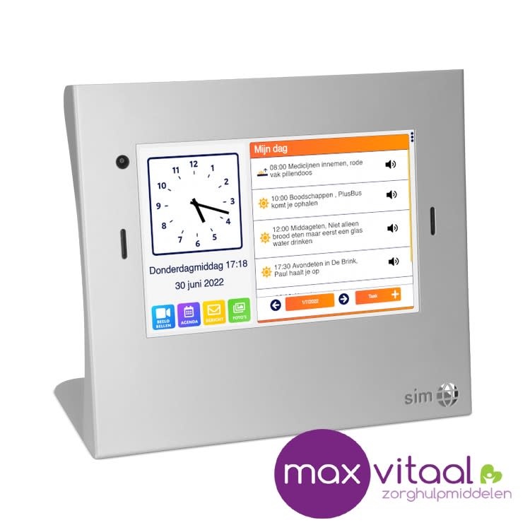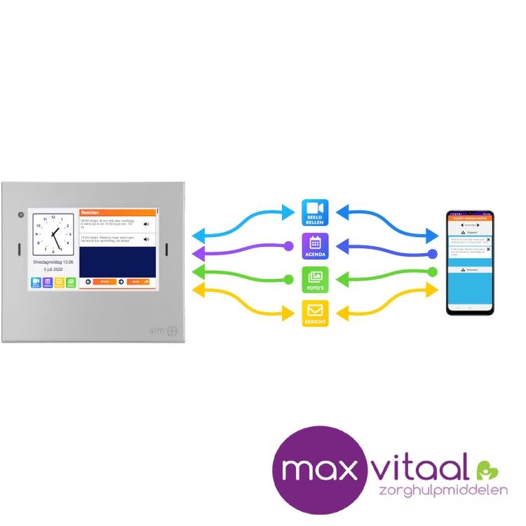 De Dagwijzer vergemakkelijkt de communicatie tussen de gebruiker en omgeving. Met slechts een druk op de knop kan er een videobelverbinding worden gemaakt met de Sim beeldbelapp. Familie en vrienden zijn dus altijd dichtbij. Ook kunnen familie en vrienden via de Dagwijzer beheerapp berichten en foto’s versturen. Deze verschijnen direct op de Dagwijzer. Zo kun je elkaar altijd op de hoogte houden. Digitale communicatie was nog nooit zo makkelijk!