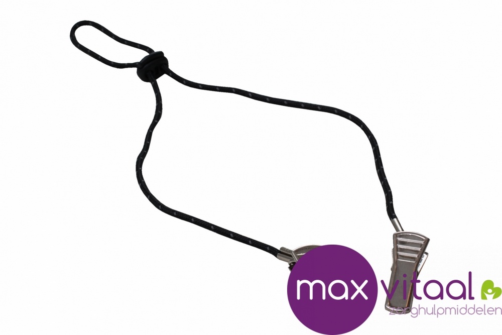2. Verstelbare slabhouder om uw slab of servet op zijn plaats te houden. Voorzien van een zwart nylon koord en een vergrendeling zodat het koord op maat in te stellen is.