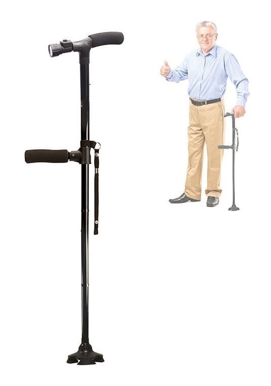 De Clever Cane biedt mobiliteit en stabiliteit door de draaibare antislip voet onderaan die ervoor zorgt dat hij blijft staan terwijl men de handen vrij heeft. De wandelstok is ook voorzien van een extra horizontaal handvat voor optimale steun bij het opstaan. Dit extra handvat is inklapbaar en is net zoals het handvat bovenaan bekleed met een zachte foam laag. De wandelstok is eveneens voorzien van verlichting door 6 heldere LED-lampjes met verstelbare knop voor een goed zicht. Inclusief veiligheidsalarm voor noodsituaties. Inclusief polslusje. Technische info: