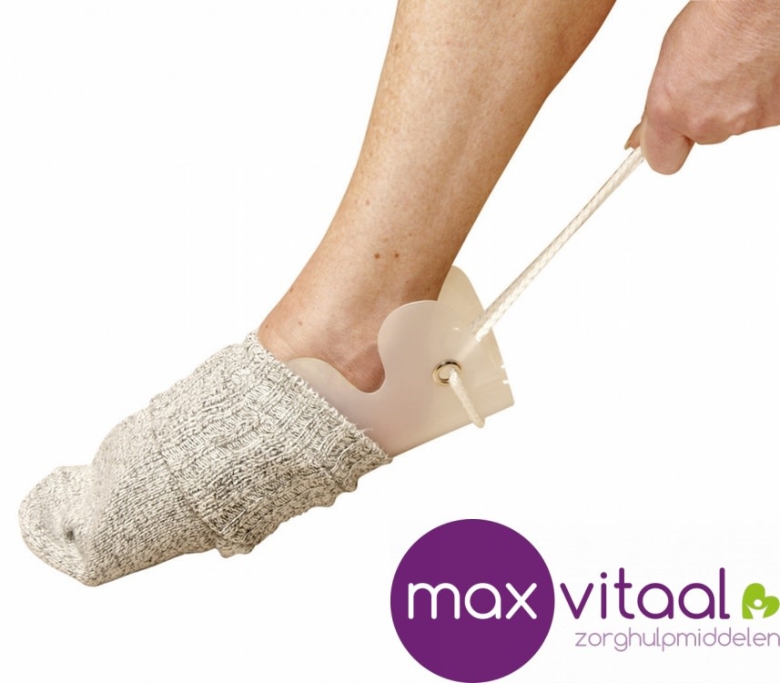 De unieke vorm van de flexibele lichtgewicht sokaantrekker houdt de sok op de sokaantrekker tot de sok over de voet getrokken is. Kan in elke gewenste vorm gebogen worden. De lange aantrekbanden kunnen op maat geknipt worden. Gebruik van twee handen is vereist.