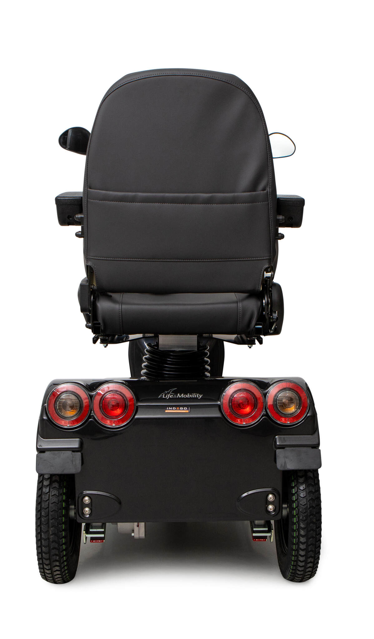 Het vierwiel-onderstel zorgt voor extra stabiliteit tijdens het rijden. Hierdoor voelt de scootmobiel zeker aan, ook bij bochten, hogere snelheden of op licht oneffen ondergrond. Dit maakt de Solo 4 Black Edition zeer geschikt voor dagelijks gebruik buitenshuis.
