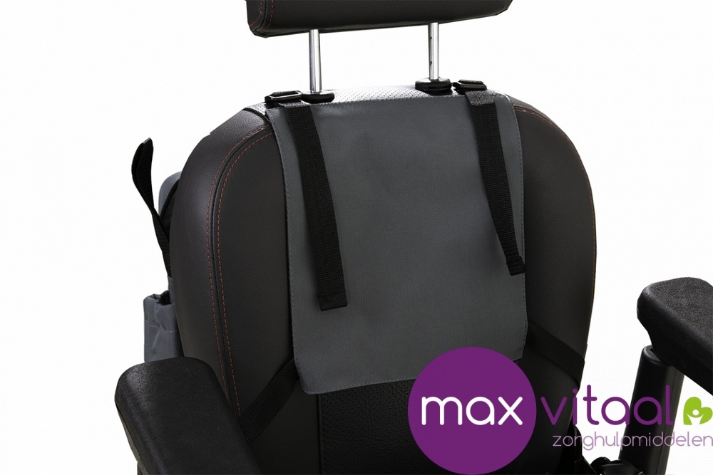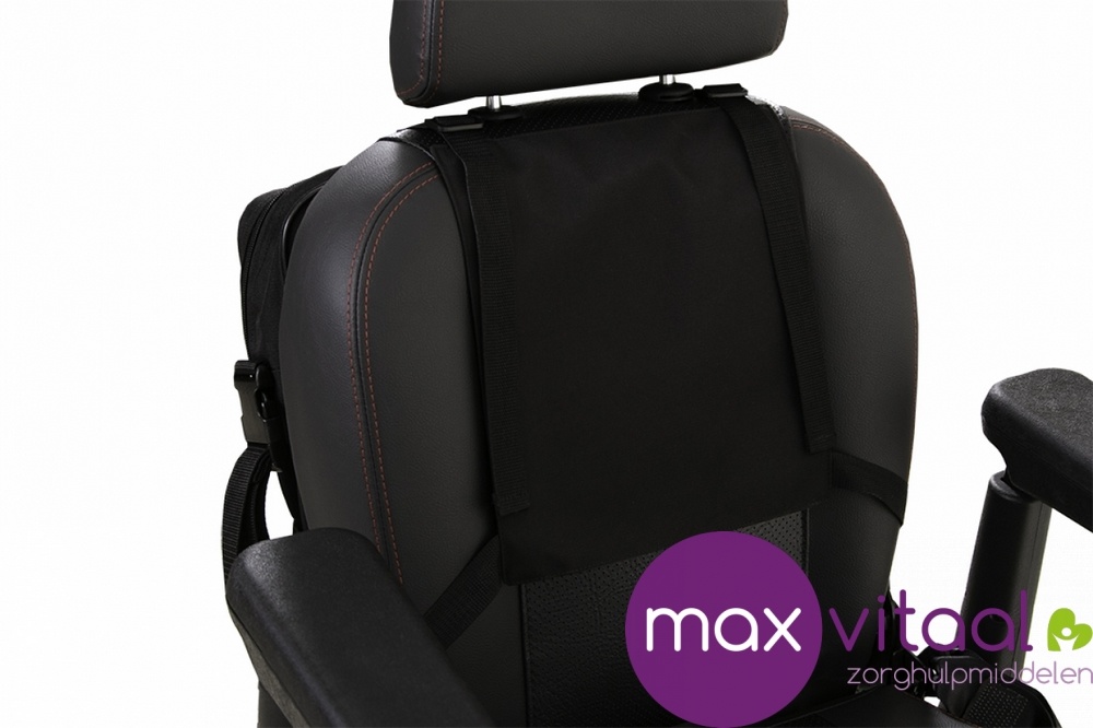 Te bevestigen over de leuning van de rolstoel of scootmobiel door een extra gedeelte over de rugleuning te plaatsen. Aanpasbaar door de verstelbare bandjes met kliksysteem.