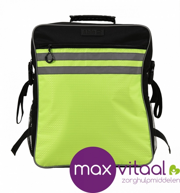 Stevige en duurzame tas voor rolstoel of scootmobiel met of zonder hoofdsteun. Één groot opbergvak, een klein voorvakje met rits. De twee zijnetjes zijn ideaal voor het opbergen van een flesje drinken. Reflecterende veiligheidsstrip. Lees meer