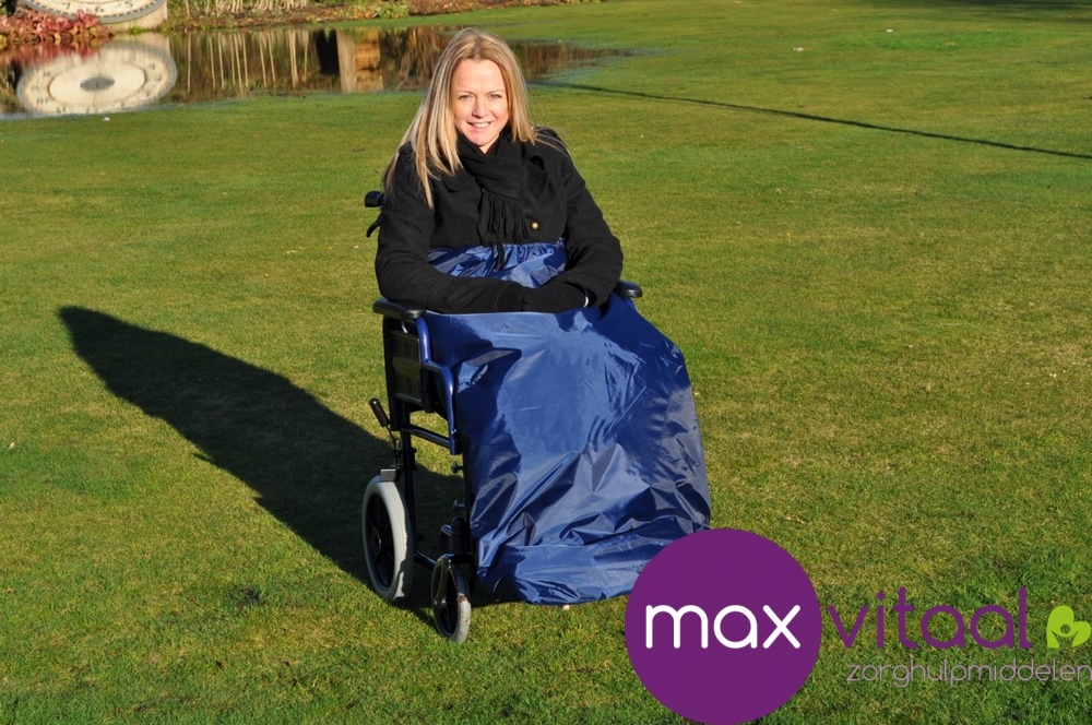 Deze wheely apron plaatst u over de bovenkant van uw benen en houdt u droog en warm. Kan met de eenvoudige gesp om uw middel of om een armsteun bevestigd worden. Heeft aan de onderzijde een elastische basis voor over de voetplaten. Volledig waterdicht. Ongevoerd. Ook verkrijgbaar in een Deluxe versie met een blauwe synthetische binnenvoering.