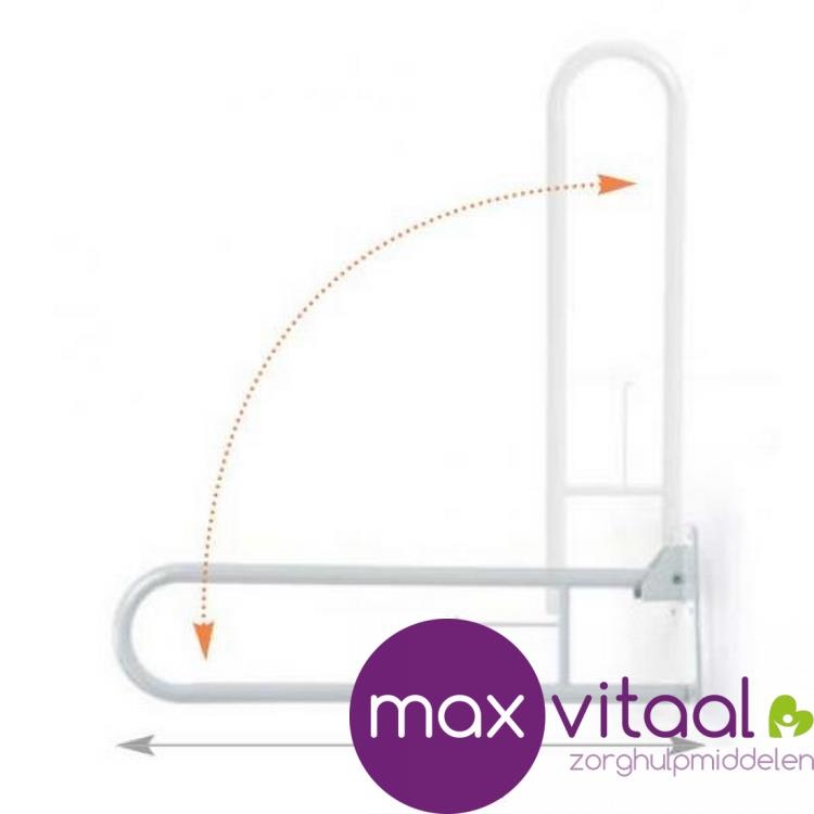 Witte opklapbare toiletbeugel, gemaakt van gecoat staal. . De toilethulp is eenvoudig op te klappen en ideaal om te gebruiken als opstahulp bij het toilet. Maximaal gebruikersgewicht, 130 kg . Lengte 74 cm. Lees meer
