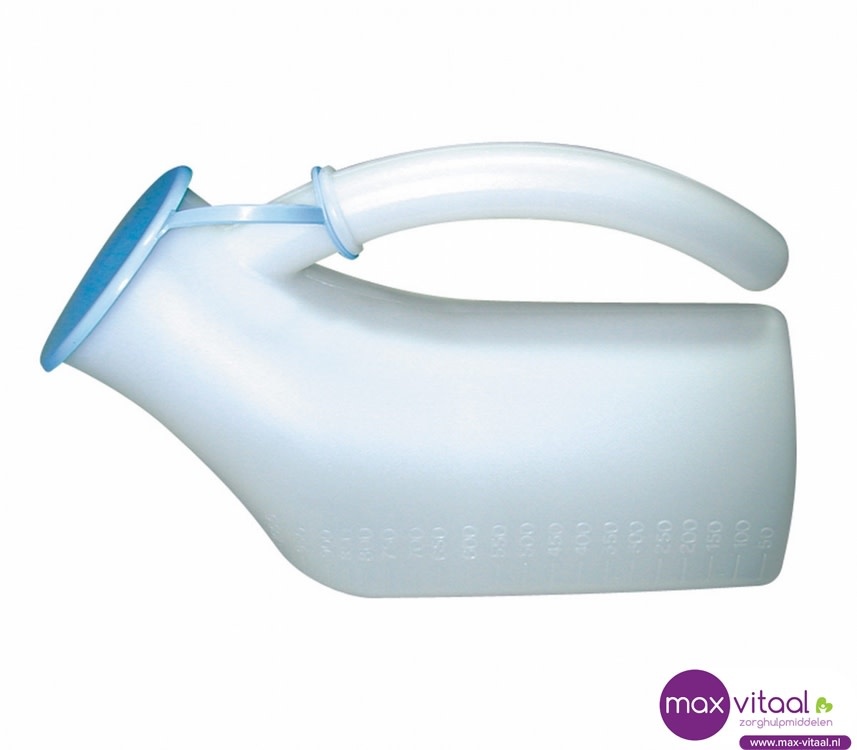 Deze melkwitte urinefles met blauwe dop heeft een handig handvat. Eenvoudig te legen en ideaal voor in bed. Niet autoclaveerbaar. Lees meer