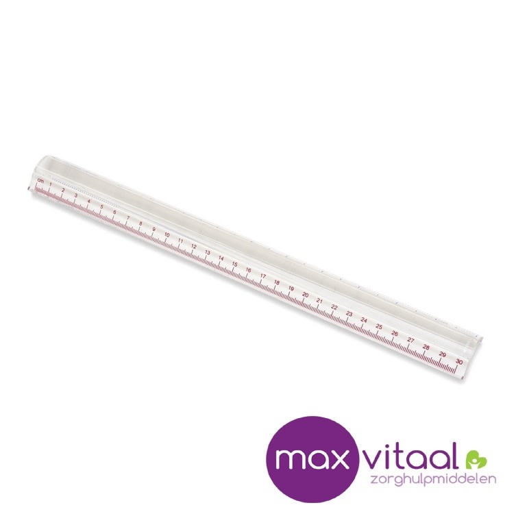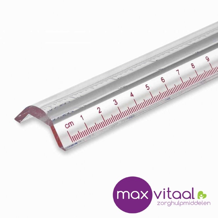 Plaats het leesliniaal direct op het leesmateriaal. Ideaal voor het lezen van kleine lettertjes, de krant, spreadsheets enz. Voorzien van maatvoering in centimeters en inches.