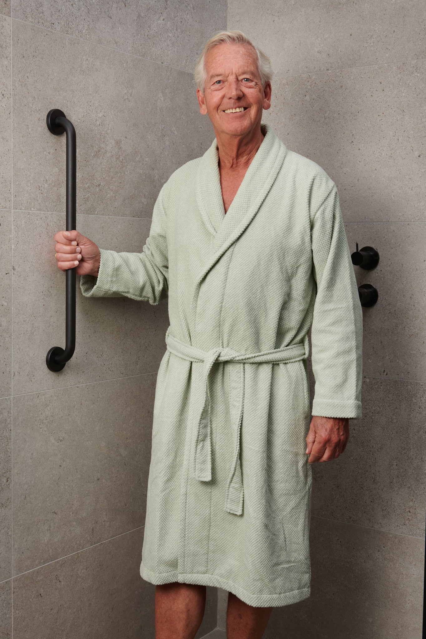 Deze wandbeugel heeft een hoogwaardige duurzame kwaliteit van RVS, kwaliteit 304 met een zwart RAL 9005 fijn structuur coating. En kan zowel binnen als buiten (voordeur) toegepast kan worden. De wandbeugel heeft een unieke draaibare montageflens voor een optimale plaatsing van de schroeven. (bijv. wel of niet in de voeg) en is onzichtbaar omdat deze is afgedekt door een rozet.