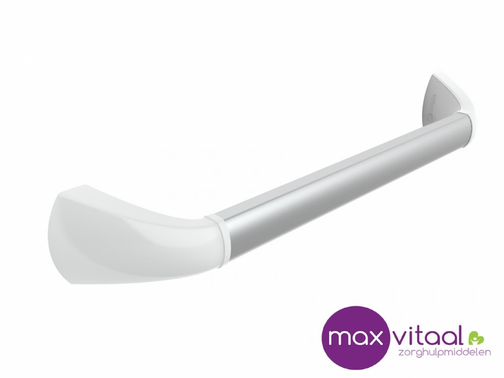 SecuCare zilverkleurige wandbeugel met afdekkappen in mat wit, Verkrijgbaar in de afmetingen: 40cm, 50cm en 60 cm. Lees meer