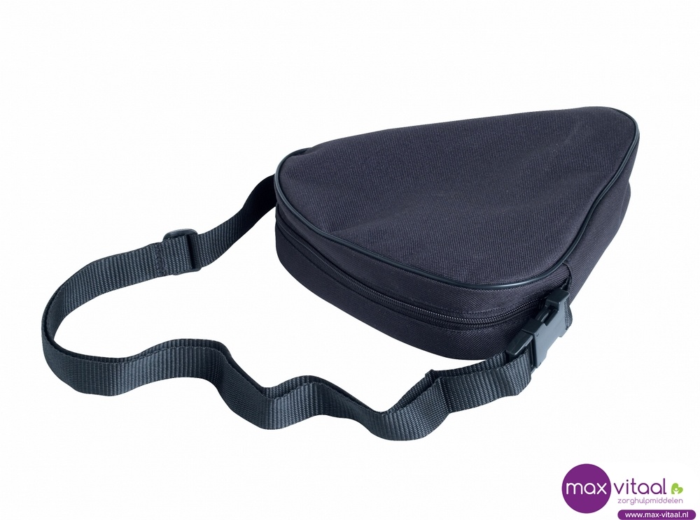 Wandelstok met een opklapbare zadelzitting. Ideaal om mee te nemen naar evenementen en handig op reis. Verkrijgbaar in vaste, verstelbare en opvouwbare. De opvouwbare versie wordt geleverd met een schoudertas met draagband. De zadelzitting is voorzien van een vergrendeling tegen ongewenst omklappen, zowel in de zitpositie als in opgeklapte stand. Kleur zwart.